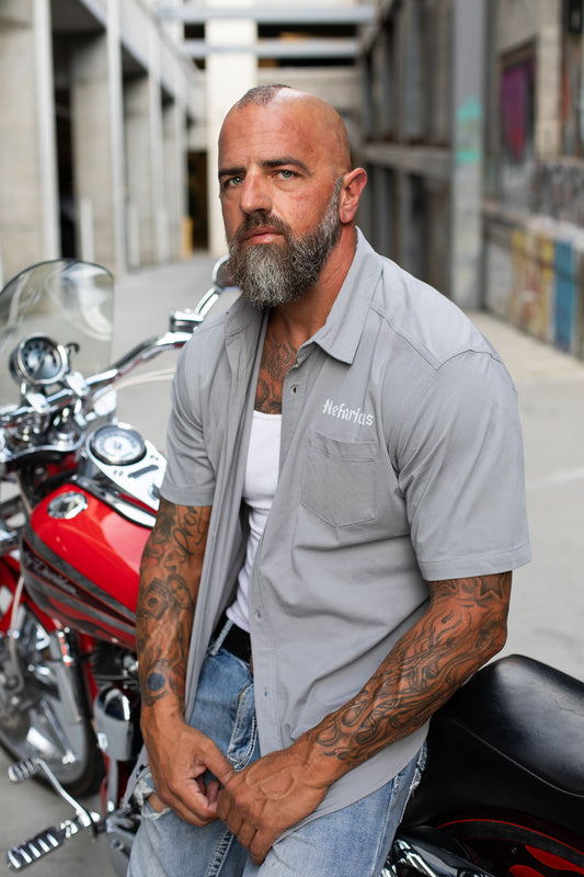 OG Skull Gray - Perforated Woven Short Sleeve Button-Up Shirt