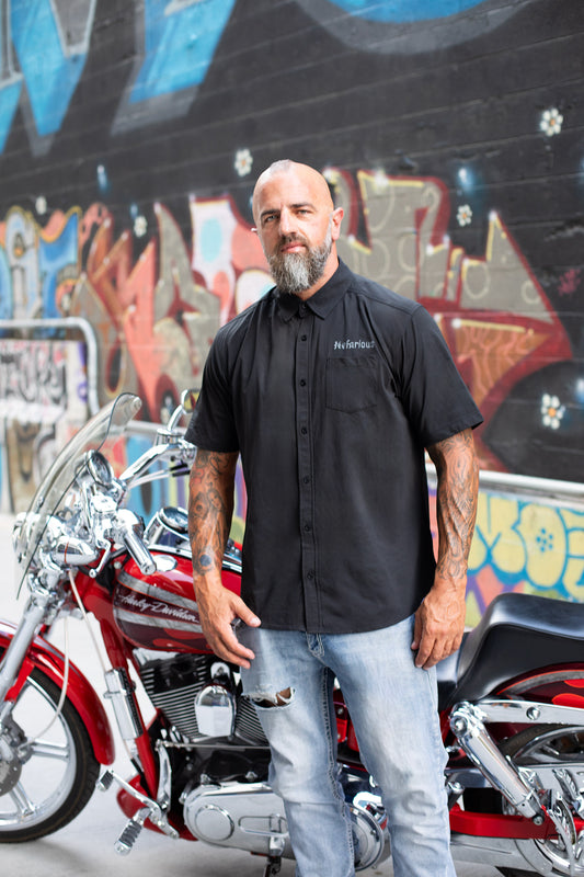 Skull & Pistons - Perforated Woven Short Sleeve Button-Up Shirt